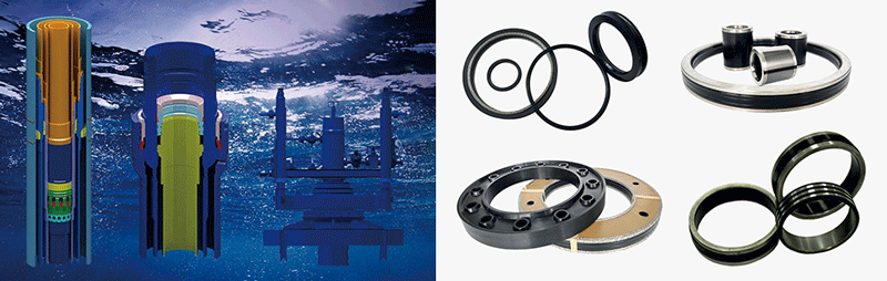 • Provide the best sealing type and material for various oil and gas drilling and exploration applications to maximize the life and performance of the sealing system. NBR, HNBR, FKM, Aflas, FFKM, PTFE, PEEK materials are widely used in downhole.